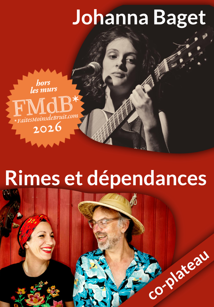Johanna Baget & Rimes et dépendancesJohanna Baget est une troubadoure du XXIe siècle. Inspirée par la tradition de la chanson française et la musique folk, elle emmène son auditoire dans une ballade musicale entre tendresse et espièglerie. Un registre intimiste, des chansons à textes originales et une voix profonde pour vous envelopper.