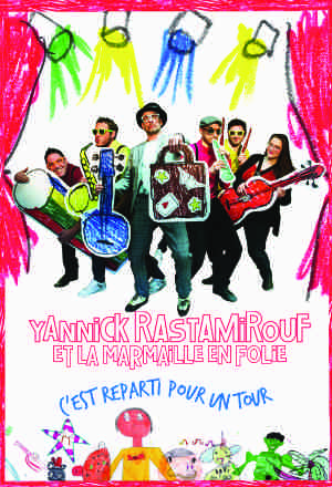 Marmaille en FolieSur une île du Pacifique, Yannick et ses musiciens coulent des jours heureux (« Mon île »)! Tout le monde est prêt pour faire la fête, mais Homer, le doudou de Yannick a disparu! (« Il est où mon doudou? ») Yannick et ses acolytes vous invitent donc à partir à sa recherche parce qu’ils n’ont pas envie de faire la fête sans Homer (« J’ai pas envie »). Ils se trouvent alors confrontés à des réalités parfois difficiles (« Si fragile »), rencontrent des personnages atypiques et hauts en couleurs (« Le Magicien », « M. Moustache »), découvrent des mystères inexpliqués (tours de magie) pour finalement se retrouver et finir par faire la fête tous ensemble (« La fête »). Un voyage musical, rythmé de mélodies entêtantes, envoûtantes, peuplé de personnages atypiques hauts en couleurs et bercé d’histoires magiques… Tout au long de cette quête vous serez sollicités pour aider Yannick à retrouver son Doudou Homer. Périple rocambolesque et dépaysant, « C’est reparti pour un tour » est avant tout un moment d’échange et de partage pour toute la famille.
