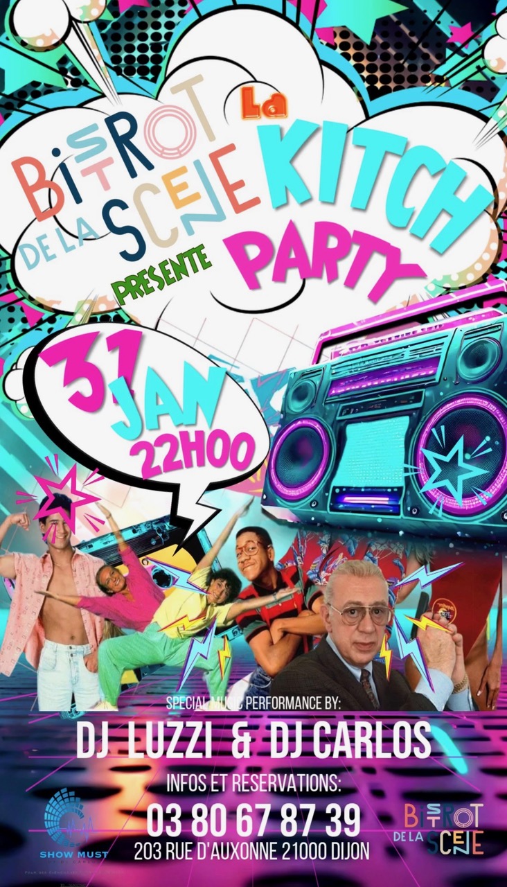 Soirée Kitch – DJ Luzzi & DJ CarlosEnvie de lâcher prise, de rire un bon coup et de danser sur des hits qu’on n’assume qu’en soirée ? La soirée kitch est faite pour ça. Ici, on ne juge pas : on sort les vestes à épaulettes, les couleurs fluo, les coupes improbables et les refrains qu’on connaît tous par cœur.